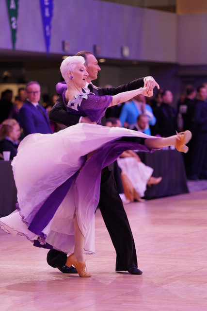 My instructor and dance partner, Darius Mosteika, has been teaching me the American Smooth Style of Ballroom dance for ten years. During this time, I have evolved from a retired professional modern dancer, choreographer, and teacher into an award-winning Competitive Ballroom dancer. We compete as a Pro/Am (professional/amateur) couple at the Open Gold or top level, in the senior-most division, ages eighty +.
