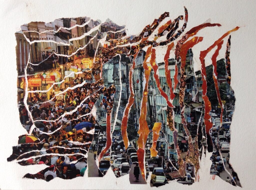 Seedpod or Spring Dance, collage by Jeri Theriault