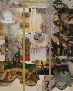 Gaye Gambell-Peterson dances with two muses. Her collages are widely displayed in the St Louis region, often with a poem alongside. Her collages also companion the poems in her chapbooks: pale leaf floating and MYnd mAp. She gets enough positive attention to keep both dances going.