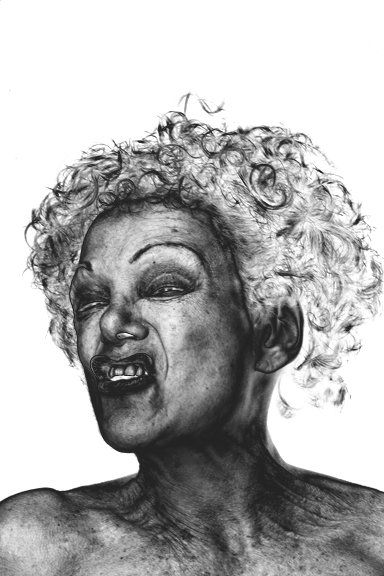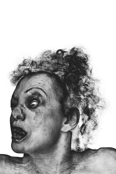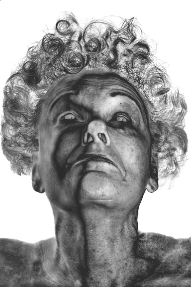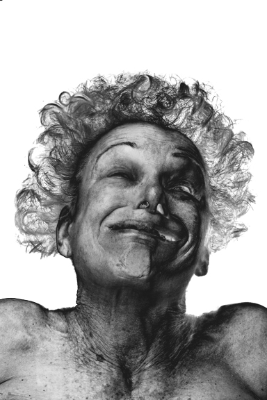 We begin with selections from her most recent series, “Heads.” The heads are self-portraits in which Unterberg “confronts the tyrannizing idea of turning into a crone or a mad woman. My grimaces allow me to tell a narrative of pain, frustration, anger and ambivalence.” One reviewer described them as “horrific, hilarious, inscrutable … the viewer is … besieged by a teeming mass of unswerving allusions, as difficult to shake as a mob of pursuing zombies.”