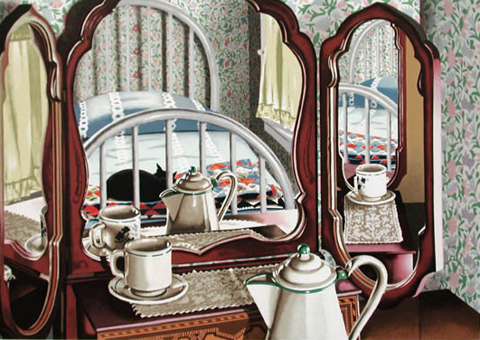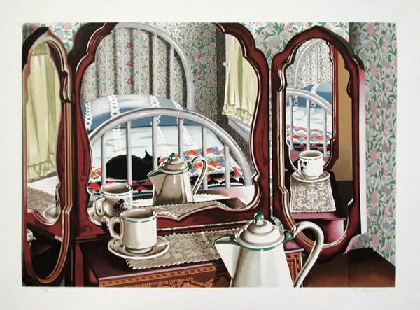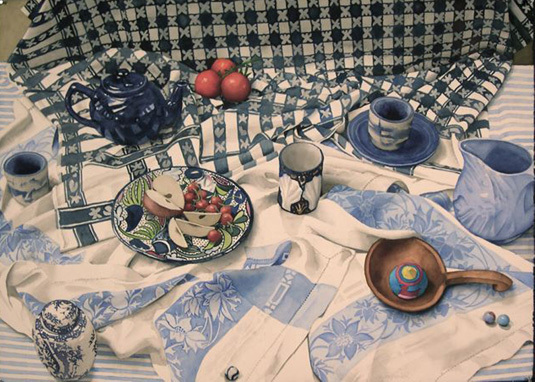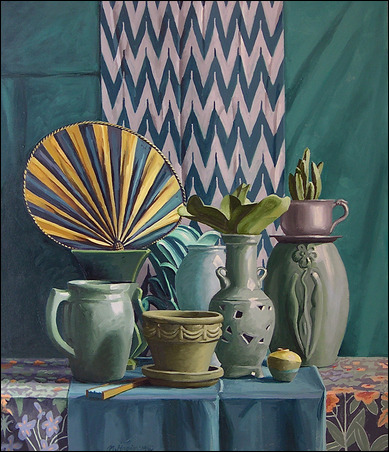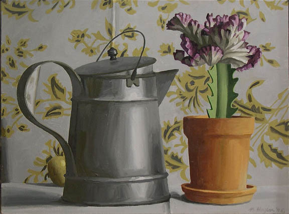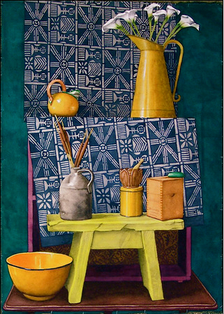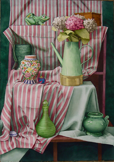 Nancy Hagin is a major contemporary realistic painter. Working in acrylic and watercolor, she delights with her lush colors, opulent patterns and reflected forms. Educated at Carnegie-Mellon University and Yale University, she has taught at Pratt Institute, Fashion Institute of Technology, Cooper Union and SUNY/Purchase among other institutions. Hagin has been honored with a Fulbright Grant (Rome), two grants from the National Endowment for the Arts, and an award from the National Academy of Design. In 1992, she was elected a full Academician of the National Academy of Design. These institutions have collected Hagin’s work as have the Museum of Fine Arts, Boston; DeCordova Museum and Sculpture Park, Lincoln, MA; Brandeis University, and the Art in Embassies Program among others.