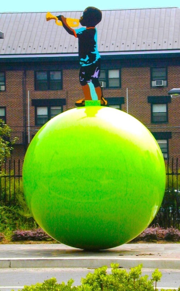 JUPITER AT HOBOKEN 2ND ST. STATION PLANETARY PARK: painted steel and fiberglass 204x48x120 inches in diameter 2004. One of the artist’s many public art installations.