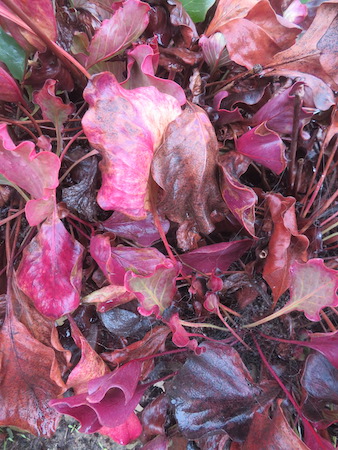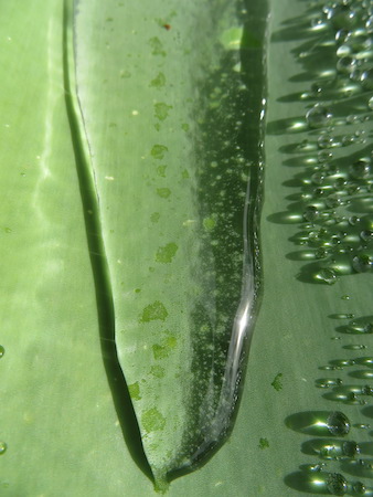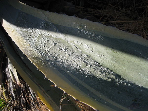 Succulents like deep plum aeonium are precisely dotted; agave serves up water on pointed spoon-like blades; and shallow ponds of decomposing leaves reflect the hue of Emily Dickinson’s eyes, “Like the sherry in the glass, that the guest leaves.”