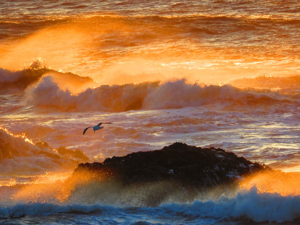 I hold my breath. Click. The snorkel snaps shut. I’m terrified again. No, I am not. Not terrified. I’m sitting on a sandy beach by the water’s edge. Gentle waves rock and curl into the shore, kiss, kiss, then rustle the sand; fringes of water stroke in, slide out. A gentle sun drenches down and warms me, breathing easy now, sighing light. I can hear seagulls and terns. A nightingale. Salt on the breeze. Above and to the right, a palm tree waves its fronds, etching tiny, delicate shadows on my face, shadows I feel as cat’s whiskers, and now I am cool and still. Light and shadow alternating; dear sand, dearly beloved beach.