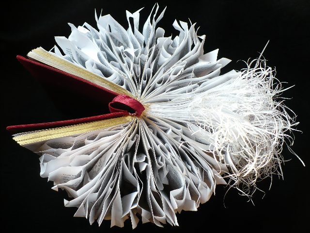 What beautiful, meaningful art, emphasizing with great skill and craft how precious books are, in both their words and their vessels.