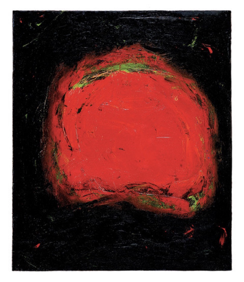 Clouds Rise Up, 2004-5, is an example of an earlier work in which the trigger was the sound of a musician playing a shakuhachi flute. Steen wrote: “This is exactly what I saw as I listened to him play his flute. Each note he played had two sounds and two colors: red and orange, which is why the two colors you see move together as one shape on the slightly metallic green surface.” To me, the effect came close to calligraphy, which was quite fascinating, as the flute had a Japanese origin.