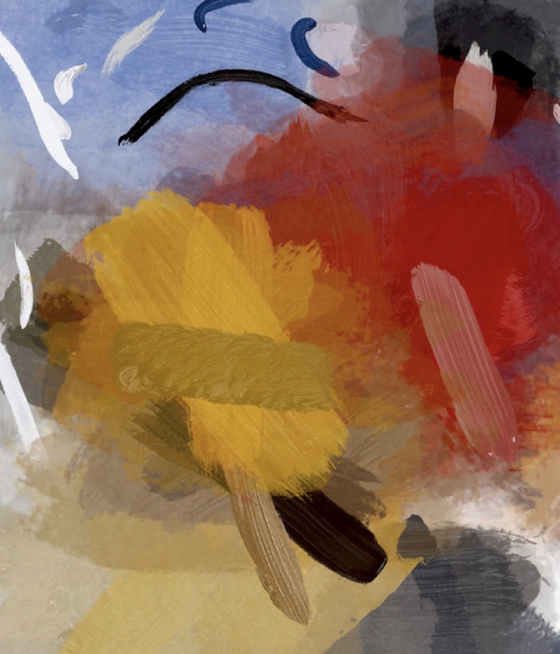 Wandering through My Alphabet, 2022, is another recent digital work in which Steen combines previous themes or vocabulary. Here she uses colors of her unique alphabet (the letter A, for her, is pink, for example). But her letters are not literal; instead, she combines alphabetic colors with textures. She has said, “sometimes the textures I see are solid; sometimes they are speckled and undulate like miniscule corduroy tufts, like grass in the breeze. Waving, swirling . . .” One can almost call this work an “alphabetscape.”