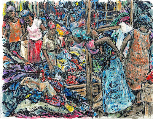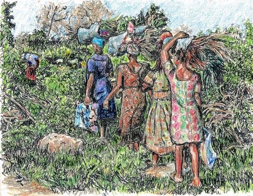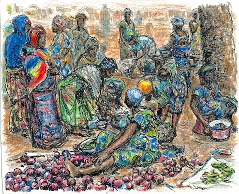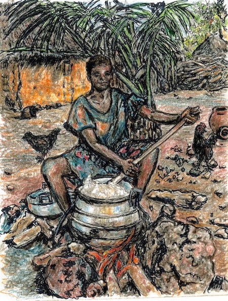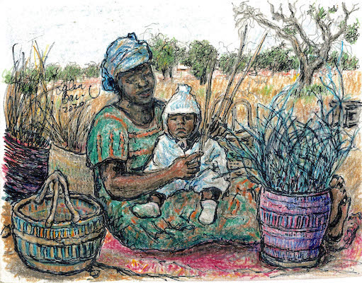 Women of Ghana, miniature pencil paintings with ink by Helen Bar-Lev