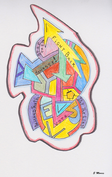 Fight Back!, drawing in pen, ink and pencil, by Sandy Morris, Oakland, CA.