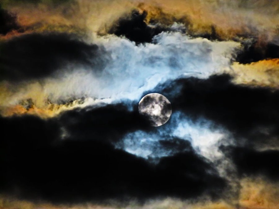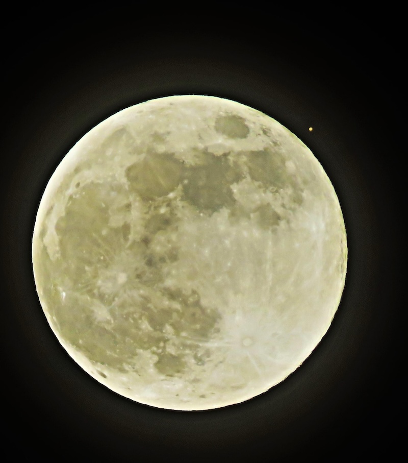 Harvest moon reddened with smoke from Oregon forest fires, photograph by Merry Song, 2022.