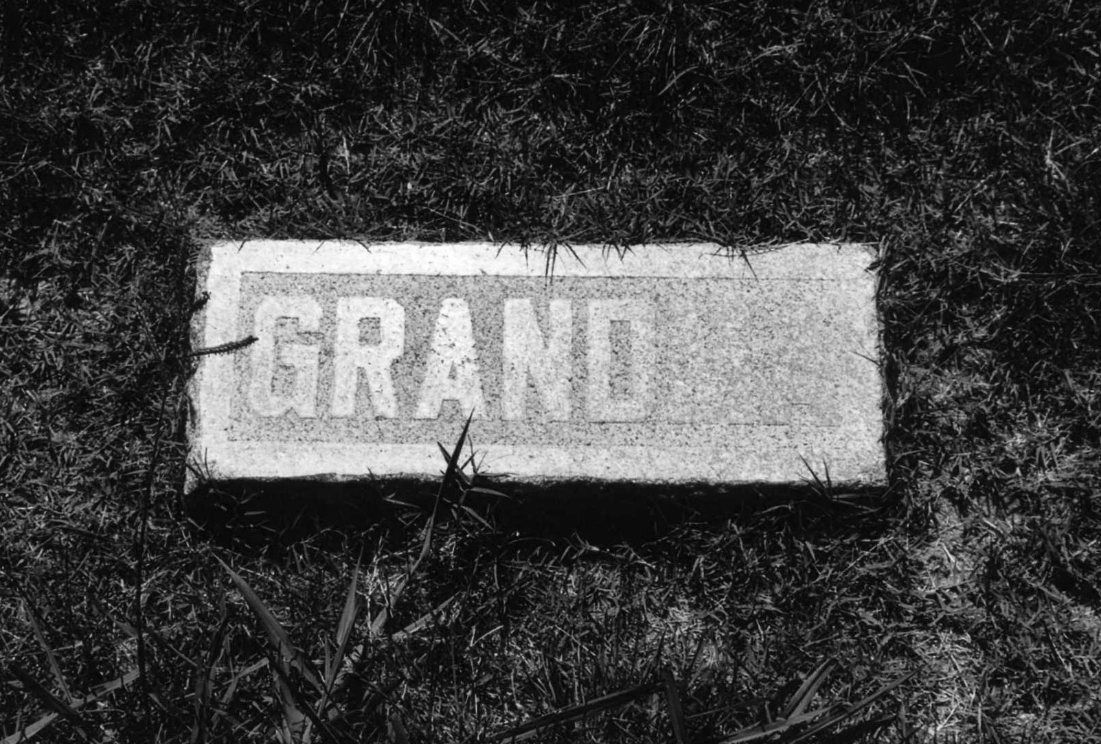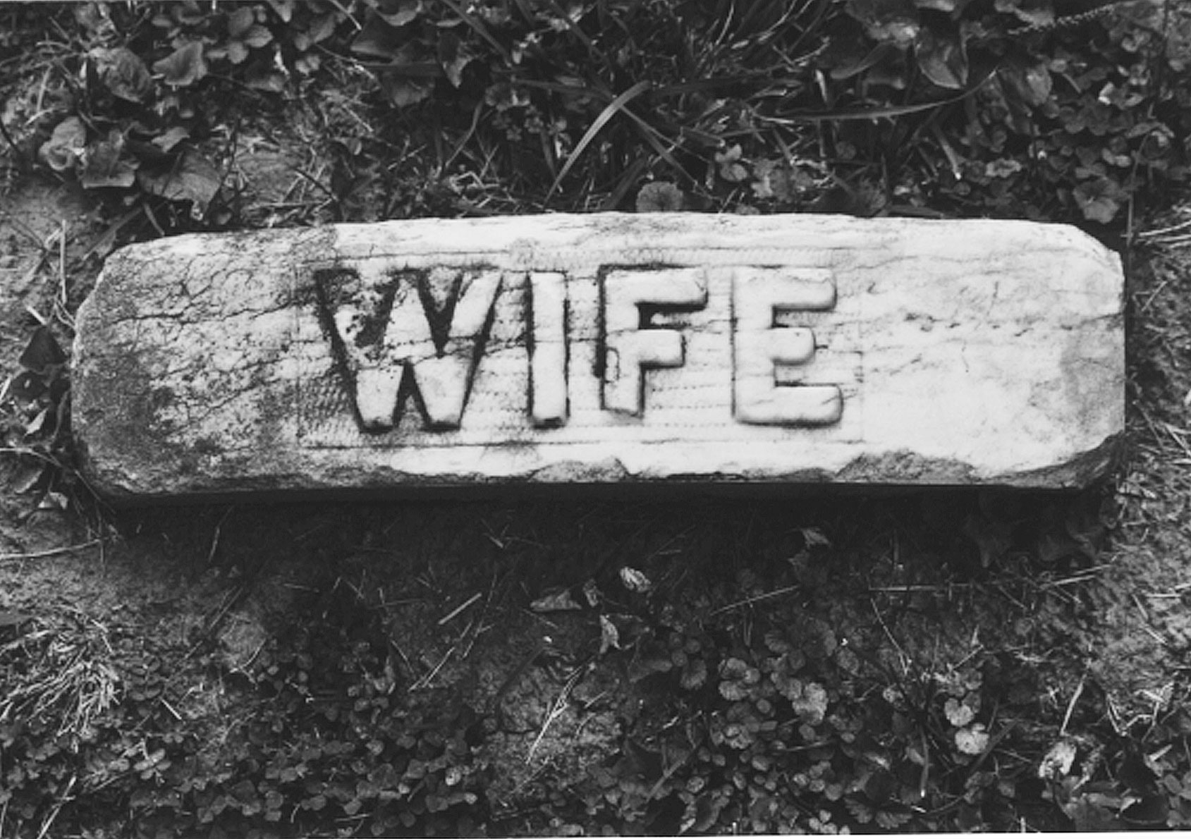“In 2005 I took a road trip to help a friend who is interested in genealogy move across the country. While looking for traces of her family in old graveyards in Ohio, Kentucky and Indiana, I often came upon headstones carved without names. Some were very old; others looked more recent. I photographed them with Kodak 200 film and my 35 mm, Canon A1 using a 50mm 1:18 lens. The film was developed at a local Kroger. When I got home to California I found similar anonymous stones in graveyards here and photographed those. I scanned over 200 images into my computer, digitally removed the color, and cropped, burned and dodged the images playing with legibility. Some I had printed in a catalog. A very few were lithographed onto silver leaf so that the image vanishes or shifts color with the light. The series is ongoing.”