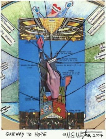 Perhaps her best-known work was “Euthanasia,” censored in 1976 at an exhibition at Syntex Corporation in Palo Alto, CA. In February 2003, “The Crossing” was censored by the French Cultural Center in San Francisco; and in 2008, a work called “Gateway to Hope” was censored from an exhibition in Beijing.