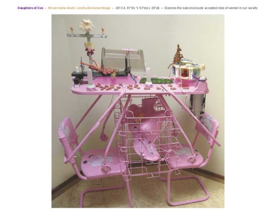 In making use of toys, machines, and discarded rubbish for her often-searing political commentary, Worthington combines a sharp critique of society with humor and fun. Plus, her craftmanship is beautiful.